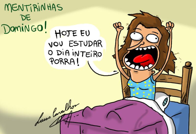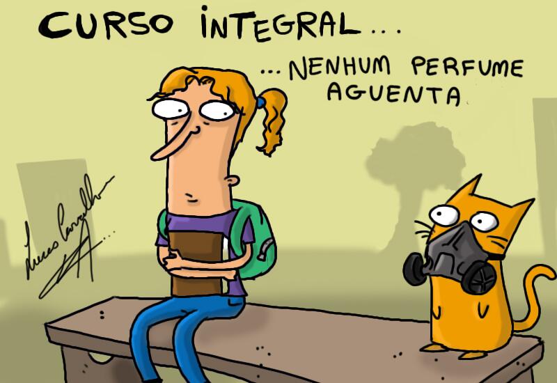 Nesta página o próprio Lucas desenha os cartoons que mostram alguns problemas que nós alunos temos em época de provas, professores que não dão aula, animais vagando pela universidade...