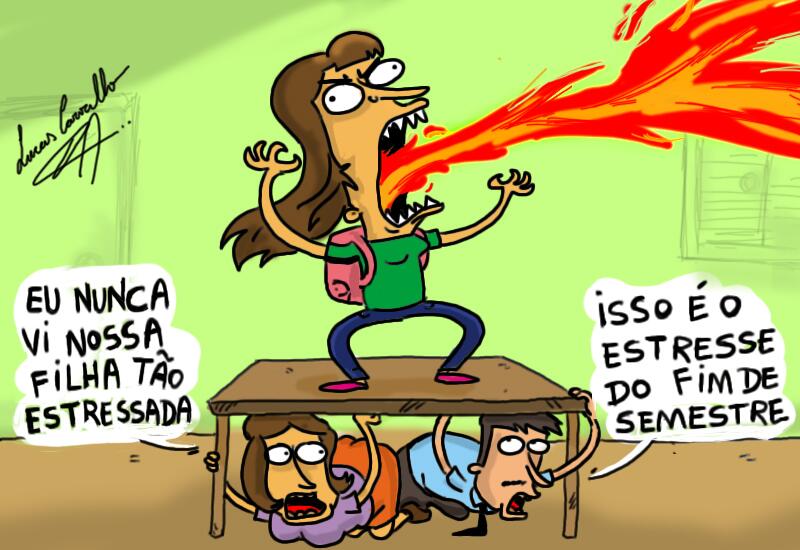 HAHAHAHAHAHHAHAHAHAHAHHA Eu me vi naquela tirinha do domingo e naquela da menina estressada. Faculdade é assim mesmo, mas tem que ter paciência haaha.